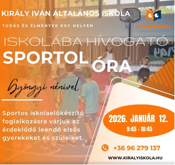 A Király Iván Általános Iskola szeretettel hív minden nagycsoportos óvodást és családját egy vidám, sportos iskolaelőkészítő foglalkozásra.