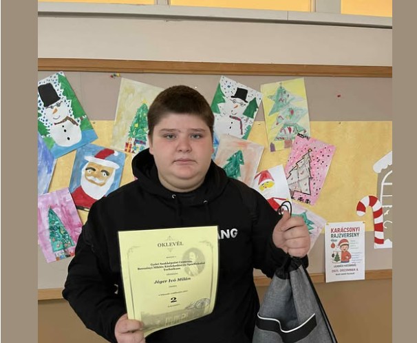 Jéger Milán 8. osztályos tanulónk a közelmúltban vett részt a Győri SZC Bercsényi Miklós Közlekedési és Sportiskolai Technikum Műszaki vetélkedőjén.